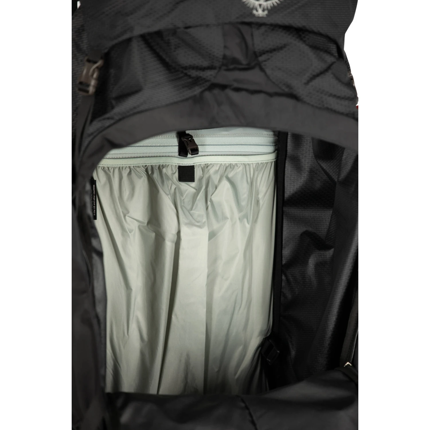 - Internal compression strap system for stability at the top of the pack
