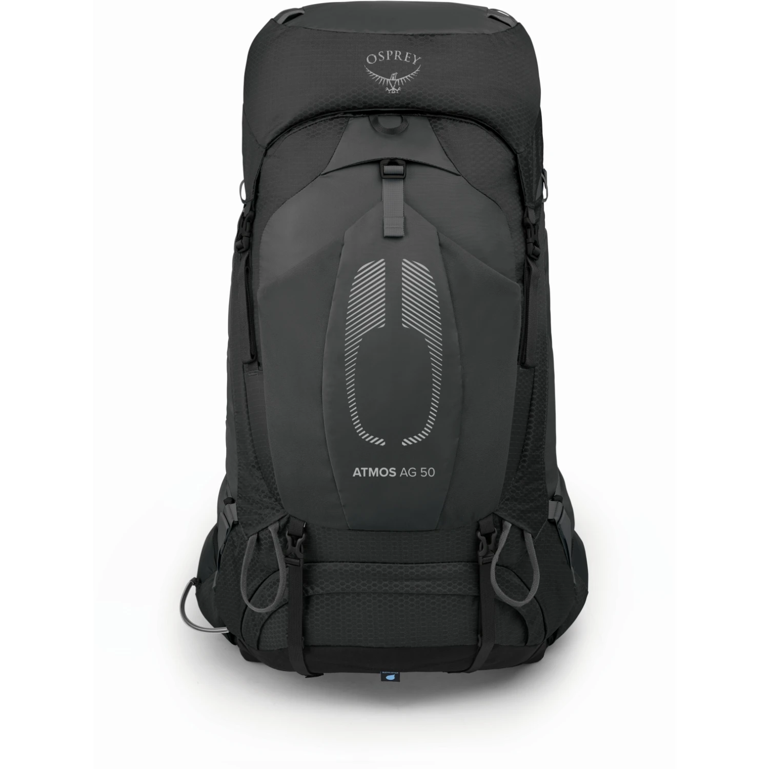 The Atmos AG 50 is equipped with the unique, tensioned . Equipped with the ExoForm™ Biostretch™ shoulder straps, load control straps and Fit-on-the-Fly™ hip belt, the pack feels almost weightless on your back even when fully loaded. The Inside Out™ compression strap system keeps the pack’s contents in place as you walk, providing support as you carry it. The convenient Stow-on-the-Go™ system lets you easily attach your trekking poles to the pack without having to remove it. The sleeping bag compartment with internal divider offers the possibility to store more equipment separately. The integrated and removable rain cover is stowed in the lid. If you want to save weight, thanks to the FlapJacket™ you can remove the lid and the backpack contents will still be protected from the weather.